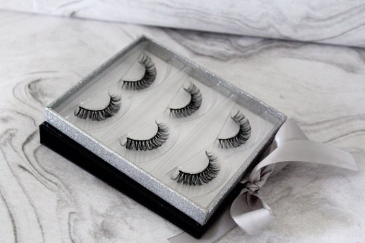 Made from high quality plant fiber material, which is 100% Vegan and Cruelty-Free. It's soft, lightweight, and gives a 3D lash effect that makes your eyes stand out. Each box has 3 pairs of lashes, adhesive is not included.